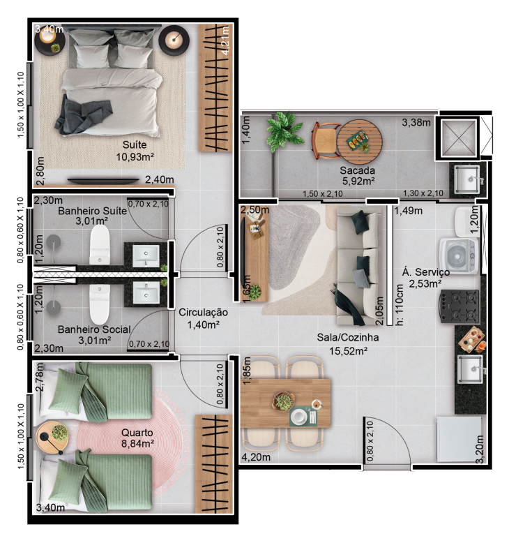 Construção de um Condomínio Residencial Fechado composto de 4 torres, com 10 pavimentos cada e 8 apartamentos por andar, totalizando 320 unidades habitacionais.